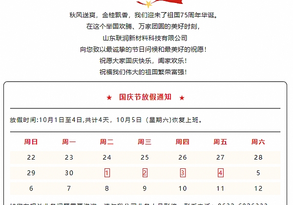 歡度國慶丨山東聯潤祝大家國慶節快樂!歡度國慶丨山東聯潤祝大家國慶節快樂!